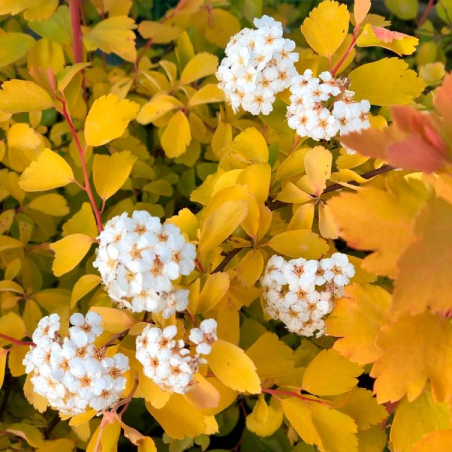 Высота и диаметр кроны до 2 м. Ежегодный прирост в высоту и ширину 20-25 см. Долговечность 30 лет. Крона густая. Листья длиной 2-4 см обратно-яйцевидные 3-5-лопастные темно-зеленые, осенью желтые. Цветение обильное в мае-июне, цветки белые диаметром до 0,8 см собраны в соцветия. Предпочитает плодородные почвы, засухоустойчива. Используется как ординар, в группах, живых изгородях.