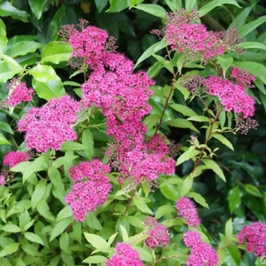 Компактный кустарник с густой кроной и яркими карминно-красными цветками. Цветение длится до 100 дней, совпадает по времени с цветением гортензии метельчатой, при их совместной посадке получаются очень эффектные группы. Необычайно красиво смотрится в рабатках.