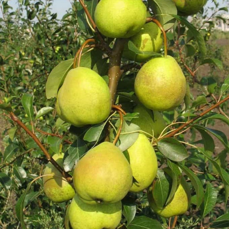 Дерево небольшое, до 3 м, быстрорастущее, с слегка пониклой, средней густоты кроной. Плоды средней величины, довольно одномерные, короткогрушевидные, без ребер. Окраска в момент съемной зрелости: основная зеленая, покровная отсутствует. В период потребительной зрелости основная зеленовато-желтая, покровная – очень слабый румянец по меньшей части плода, много подкожных точек. Кожица гладкая, тусклая. Мякоть белая, мелкозернистая, сочная, кисловато-сладкого вкуса, нежная. Дегустационная оценка – 4,5 балла из 5.