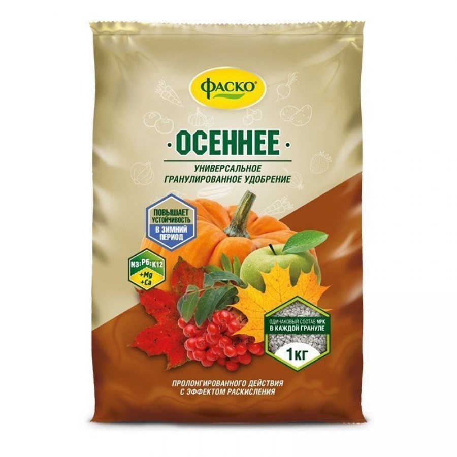 Удобрение сухое Фаско 5М минеральное Осеннее гранулированное – минеральное удобрение комплексного действия. Содержит необходимый сбалансированный набор питательных веществ, который благоприятно влияет на рост и развитие растений, укрепляет иммунитет. Сформировано в гранулу, что ускоряет процесс внесения в почву. В каждой грануле содержится 5 питательных макро и микроэлементов. Что обеспечивает полноценное питание растений.