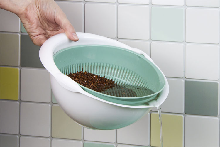 - Мелкие отверстия в чаше для слива позволяют мыть мелкозернистые продукты, поэтому крупа не смывается вместе с водой;
