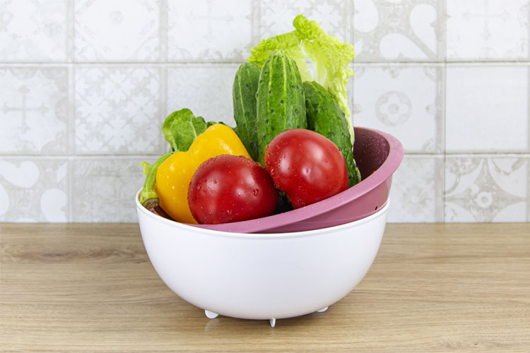Крупные отверстия в чаше для слива позволяют быстро мыть фрукты и овощи. Крупу промывать нельзя!