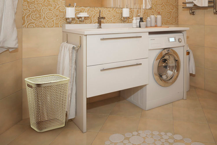Корзина изготавливается из прочного и долговечного полипропилена, отвечающего требованиям влажного помещения