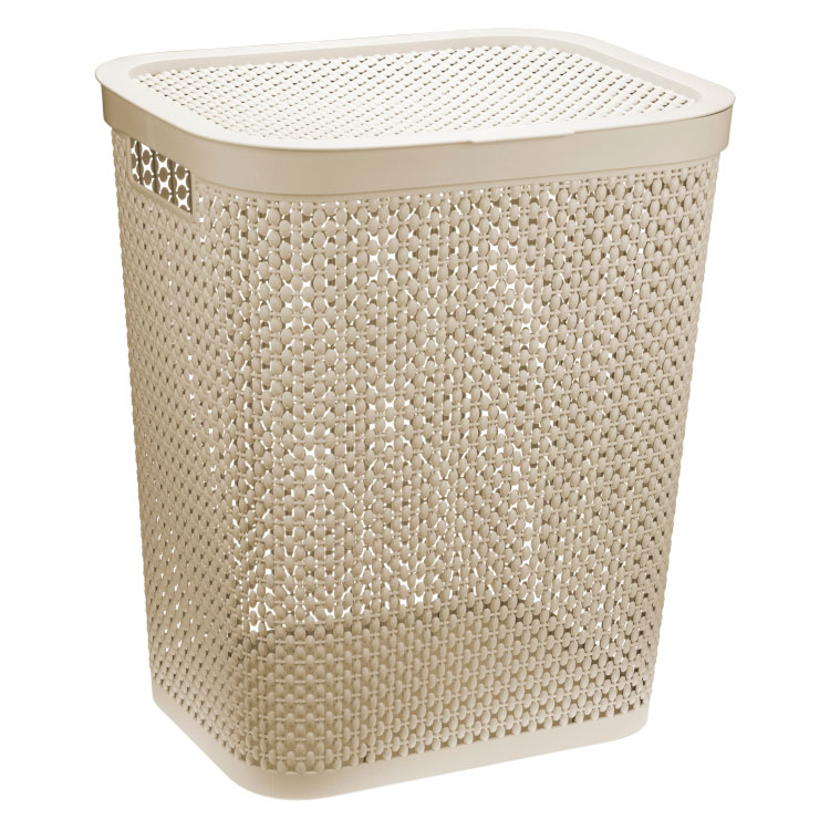 Крышка скрывает содержимое корзины от посторонних глаз, а также может служить дополнительным местом для хранения лёгких туалетных принадлежностей.