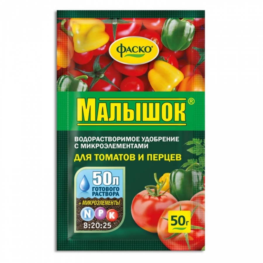 - Комплексное водорастворимое удобрение с микроэлементами содержащее все элементы питания, необходимые для выращивания здоровых и сильных томатов, перцев и баклажанов