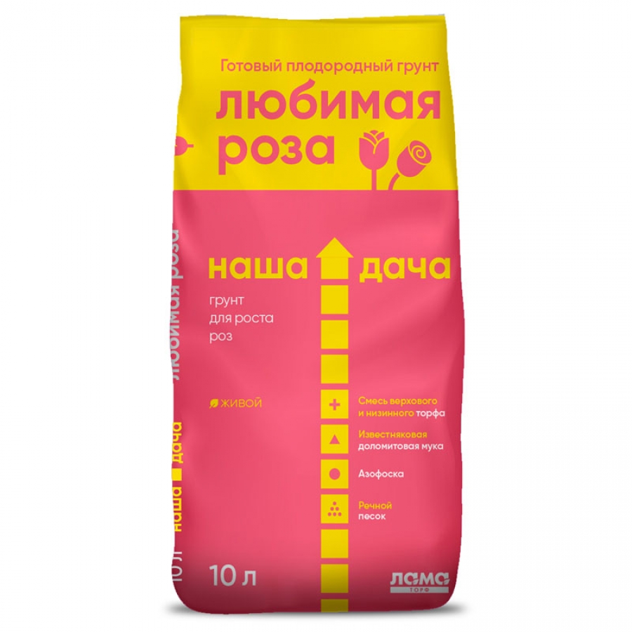 Сбалансированный плодородный грунт с водорастворимым удобрением в составе, оптимальной кислотностью для роз и необходимым соотношением элементов питания.