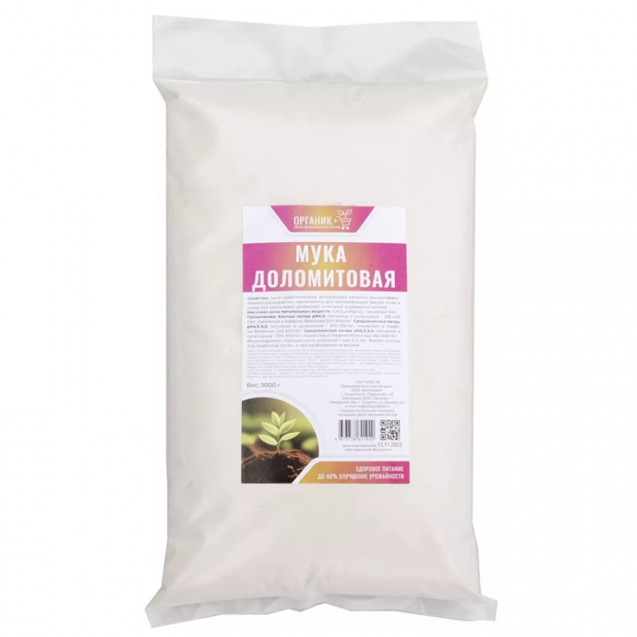 Мука доломитовая представляет собой натуральное природное удобрение, изготовленное на минеральной основе. Для ее изготовления измельчаются карбонатные породы. Доломитовая мука добавляется в грунт. Она стабилизирует его кислотность, обогащает минеральными веществами. Удобрение активно применяется дачниками и огородниками. Благодаря ему химические показатели почвы улучшаются, создаются благоприятные условия для микрофлоры. Удобрение освобождает и защищает растения от вредоносных насекомых, способствует их быстрому росту. Его рекомендуется вносить в почву осенью или весной (при необходимости).