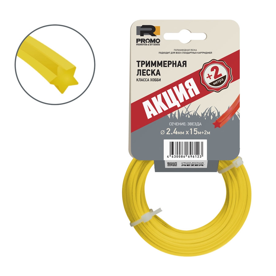 Леска PROMO класса хобби по акционным ценам. Имеет сечения в форме круга, квадрата, звезды и витого квадрата.