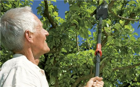 Значительная длина (160 см) и дополнительная T-образная рукоятка, расширяющая радиус действия, позволяют ухаживать даже за высокими деревьями, не пользуясь лестницей.