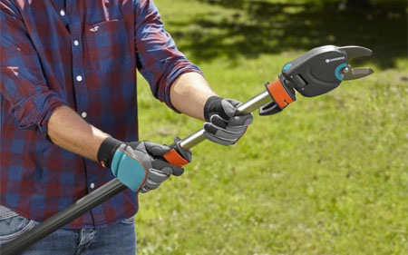 Значительная длина (от 230 до 410 см) и дополнительная T-образная рукоятка, расширяющая радиус действия, позволяют ухаживать даже за высокими деревьями, не пользуясь лестницей.