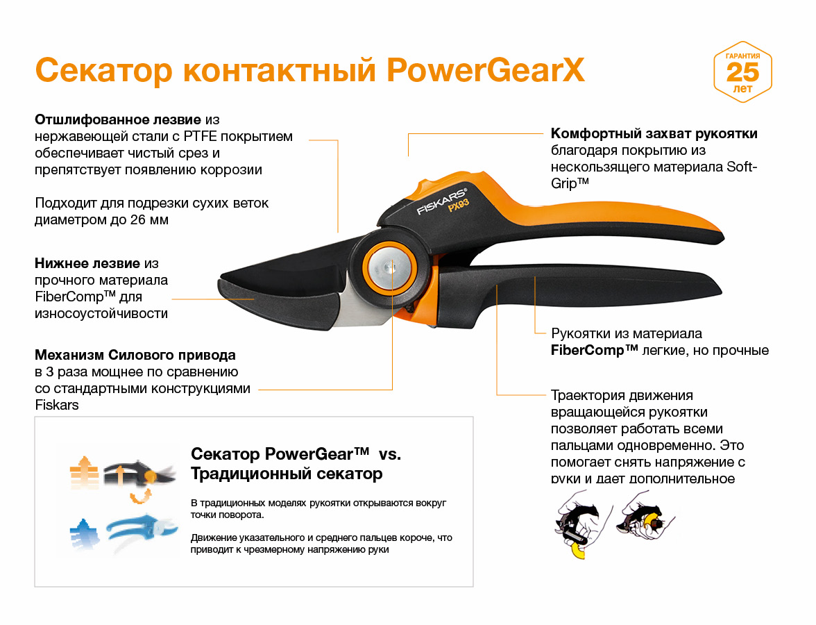 - Подходит для подрезки сухих веток диаметром до 26 мм