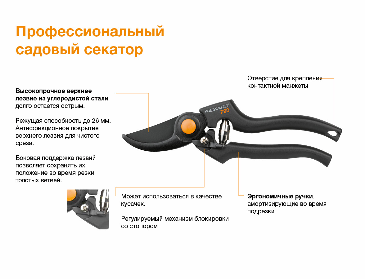 - Боковая поддержка лезвий позволяет сохранять их положение во время резки толстых ветвей