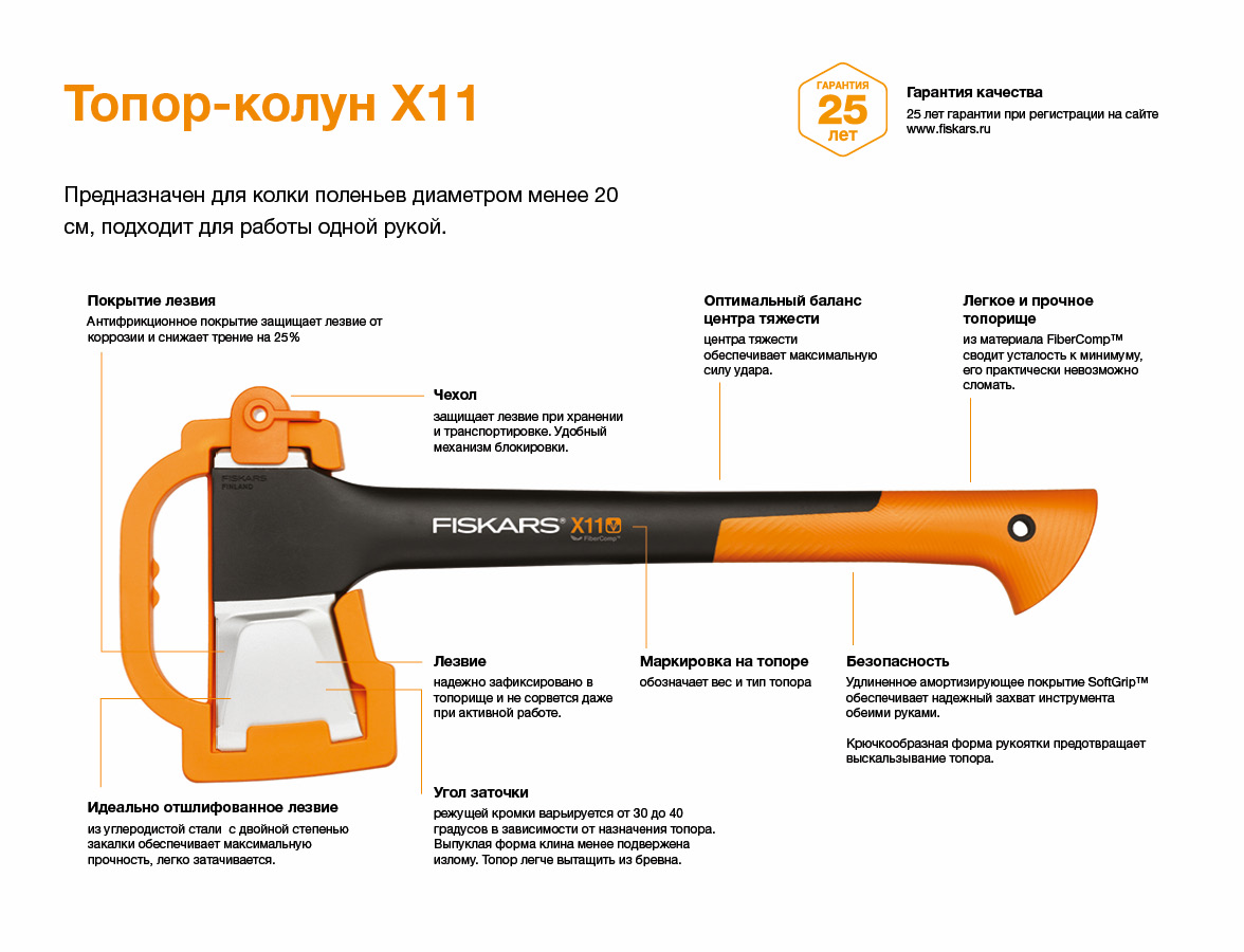 - Топор снабжен практичным пластиковым чехлом для удобства хранения и переноски