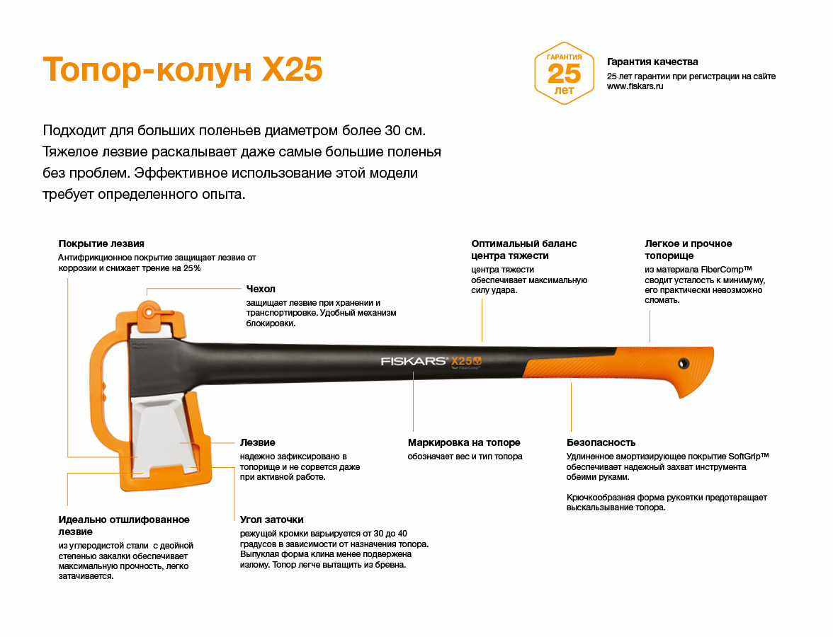 - Легкое, прочное и износоустойчивое топорище из материала FiberComp™ сводит усталость к минимуму