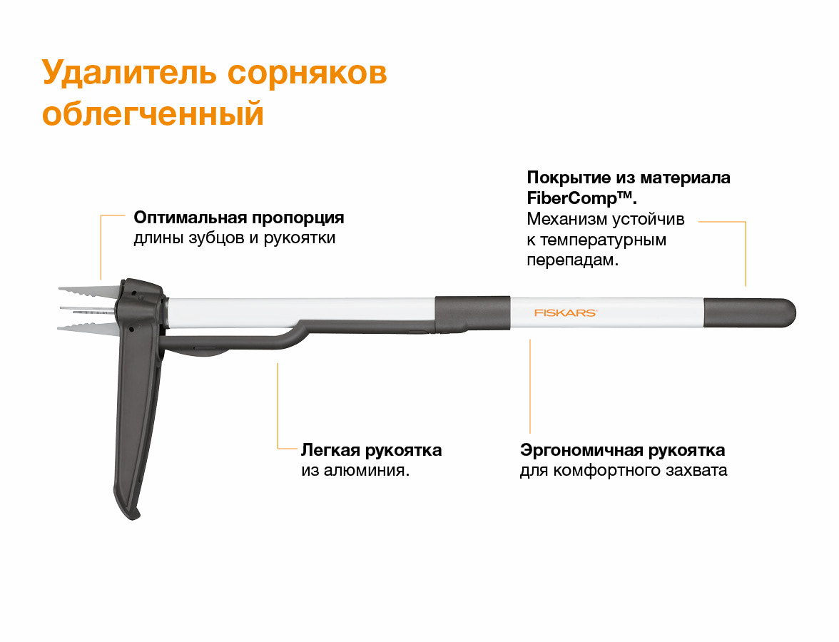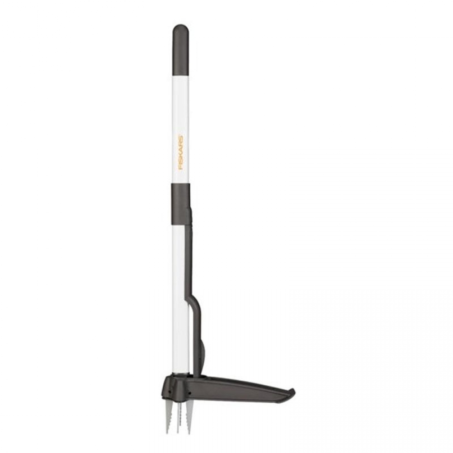 Удалитель сорняков Fiskars – это замечательный инструмент, который позволяет быстро и просто удалять любые сорняки, даже такие как одуванчики, без необходимости копать, нагибаться или использовать химикаты. Глубоко проникающие зубцы захватывают корень со всех сторон и удаляют сорняк с минимальным количеством земли.