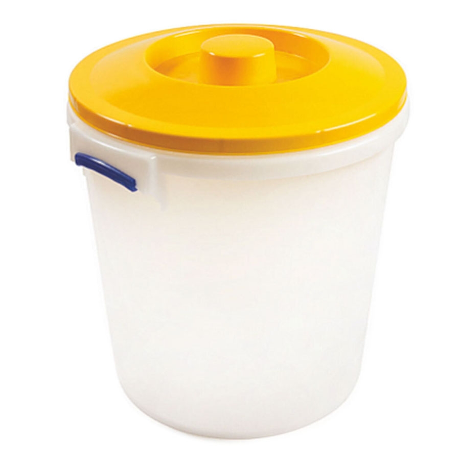 Бак пищевой пластиковый с крышкой, диаметр горловины 355 мм, эргономичные ручки, устойчивое дно.