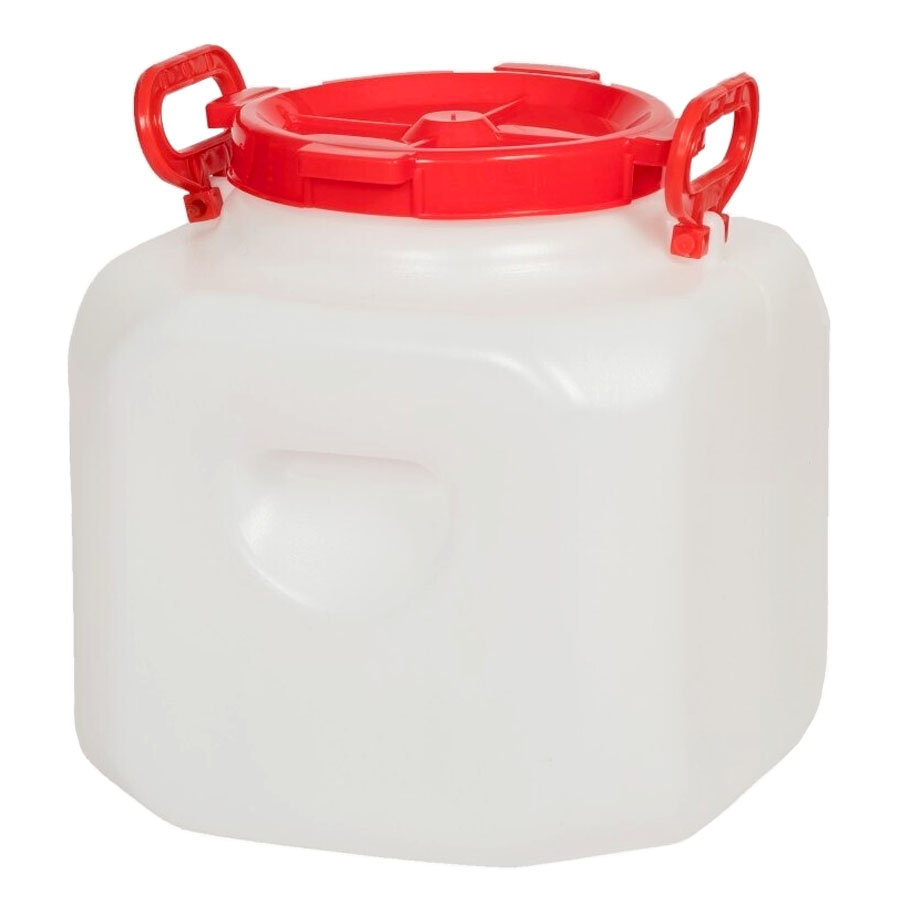Бочка пластиковая пищевая для дома и дачи, полезный объем – 34 литра, диаметр горловины – 195 мм. Винтовая крышка, два вида ручек – навесные и углубленные на корпусе.