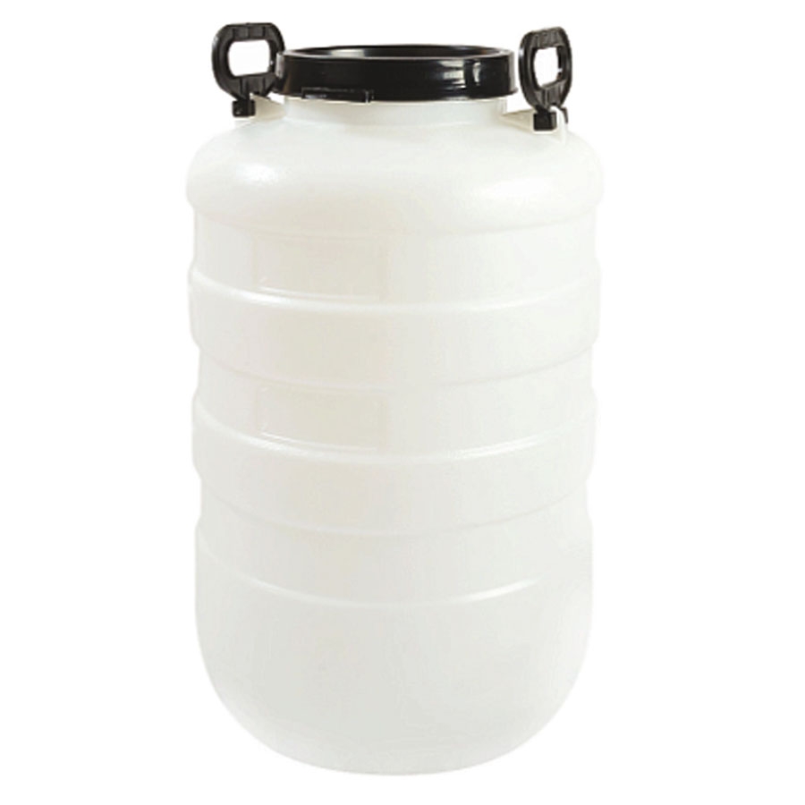 Пластиковая бочка с двойной крышкой, диаметр горловины – 195 мм, вместимость – 54 литра. В комплектацию бочки входит стандартная винтовая крышка и пластиковый клапан-прокладка. Клапан удобно вставляется в горловину и может выполнять функцию дополнительной крышки или подставки под ковш. Такая конструкция защищает содержимое от постороннего мусора и расплескивания. На корпусе фляги расположены крепкие и удобные навесные ручки. Бочка устойчива и удобно транспортируется вручную, в багажнике машины, на тележке, на рыбацких и охотничьих санях в зимнее время.