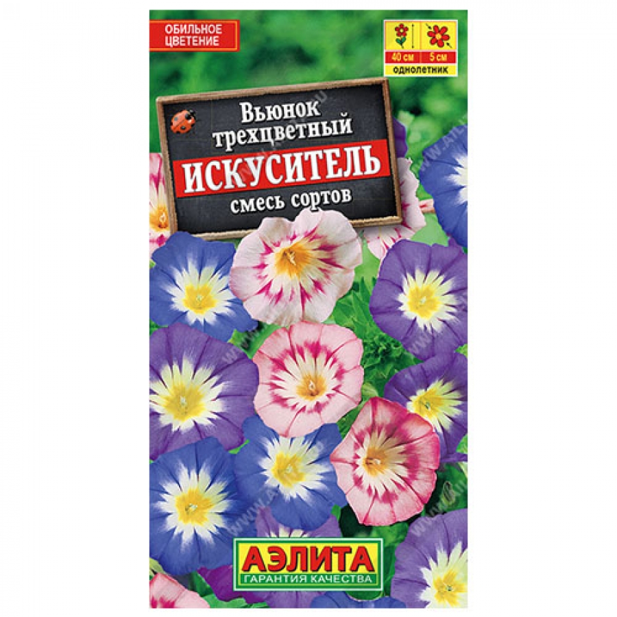 Нарядная смесь неприхотливого летника. Формирует компактные растения высотой 30-40 см, которые активно кустятся, выпуская множество боковых побегов. Вьюнок растет быстро, цветет обильно, пышно – растения буквально усыпаны яркими цветками в виде граммофончиков Ø 4-5 см. Смесь используется в качестве почвопокровной и ампельной культуры для оформления солнечных садовых цветников, балконных контейнеров, подвесных кашпо.