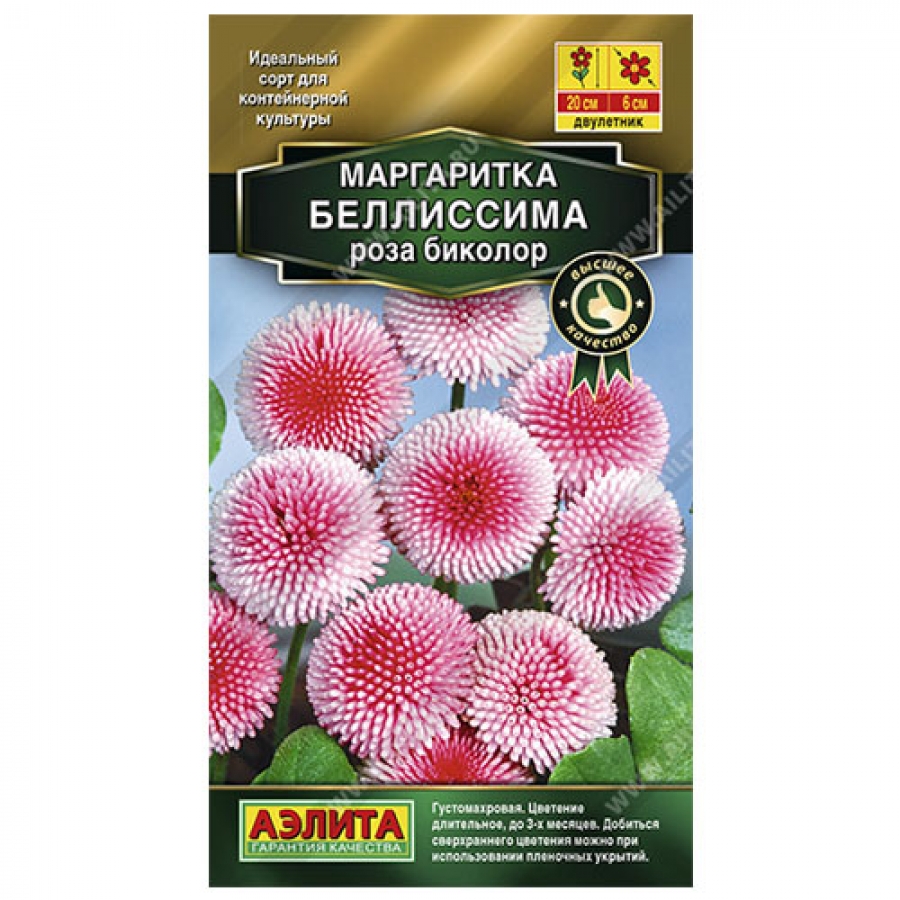 Интересная двухцветная окраска и трубчатая форма лепестков создают уникальное соцветие маргаритки БЕЛЛИССИМА РОЗА БИКОЛОР. Компактный кустик 15-20 см высотой, с розеткой изумрудной зелени и многочисленными цветоносами производит впечатление маленького шедевра. Цветение длительное, в прохладное лето – до 3-х месяцев. Добиться сверхраннего цветения можно при использовании пленочных укрытий. Отличное ковровое растение для умеренно влажных, полузатененных участков; хорошо смотрится небольшими группами среди низкорослых хвойников и растений весеннего и раннелетнего сроков цветения – виол, незабудок и луковичных (тюльпанов, нарциссов, гиацинтов). Идеальный сорт для контейнерной культуры, бордюров.