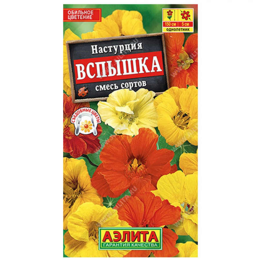 Уникальная смесь настурции, в состав которой вошли только самые яркие оттенки. Цветки обычные и полумахровые, Ø 4-5 см. Смесь быстрорастущая, плетистые побеги длиной до 150 см густо покрыты крупными цветками. Растения неприхотливые, тепло- и светолюбивые. Используются для ампельного и вертикального озеленения (с подвязкой стеблей), а также для оформления цветников в качестве почвопокровной культуры.