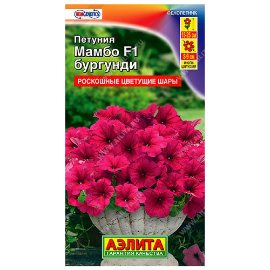 Отличная серия генетически низкорослых, обильно цветущих гибридов от компании Hem Genetics (Нидерланды). Высота взрослых растений от 15 см (в горшках) до 25 см (в открытом грунте). Применять регуляторы роста не нужно. Компактные кусты цветут удивительно крупными для карликов цветками Ø 8-9 см и выглядят роскошными цветущими шарами. Декоративность серии не страдает и в ненастную погоду. Кустики стабильно сохраняют привлекательный вид, не вытягиваются. Серия пригодна для воплощения любых дизайнерских проектов при оформлении цветников открытого грунта, балконов, патио, уличных контейнеров.
