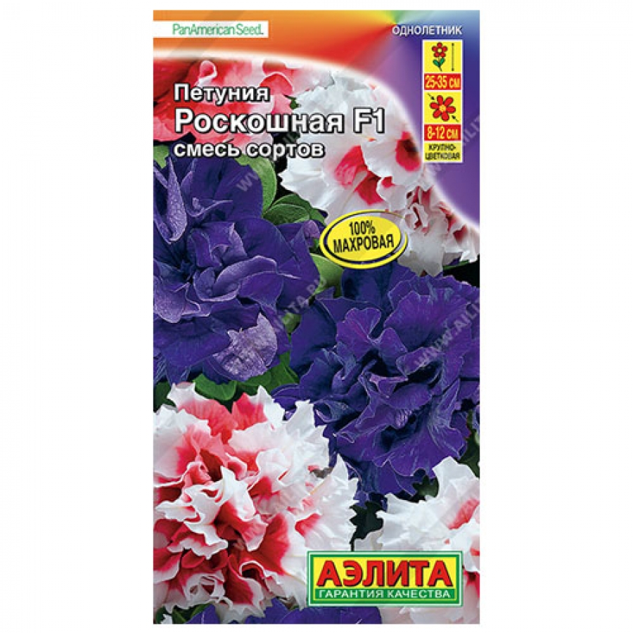 Огромные супермахровые цветки! Смесь представлена двумя великолепными гибридами американской селекции от компании PanAmerican Seed. Оба имеют пышные цветки диаметром от 8 до 12 см. Лепестки у Красного Пируэта бахромчатые, изрезанные, у Дабл Каскада ровные, волнистые. Растения кустовые, с хорошим ветвлением, высотой 25-35 см, шириной 25-30 см. Цветение достаточно обильное, с оптимальным балансом цветов и зелени. Смесь рекомендуется в основном для контейнерного выращивания на балконах, в мобильных кашпо в саду, на террасах и патио. Для успешного выращивания в цветниках открытого грунта желательно предусмотреть защиту от дождя.