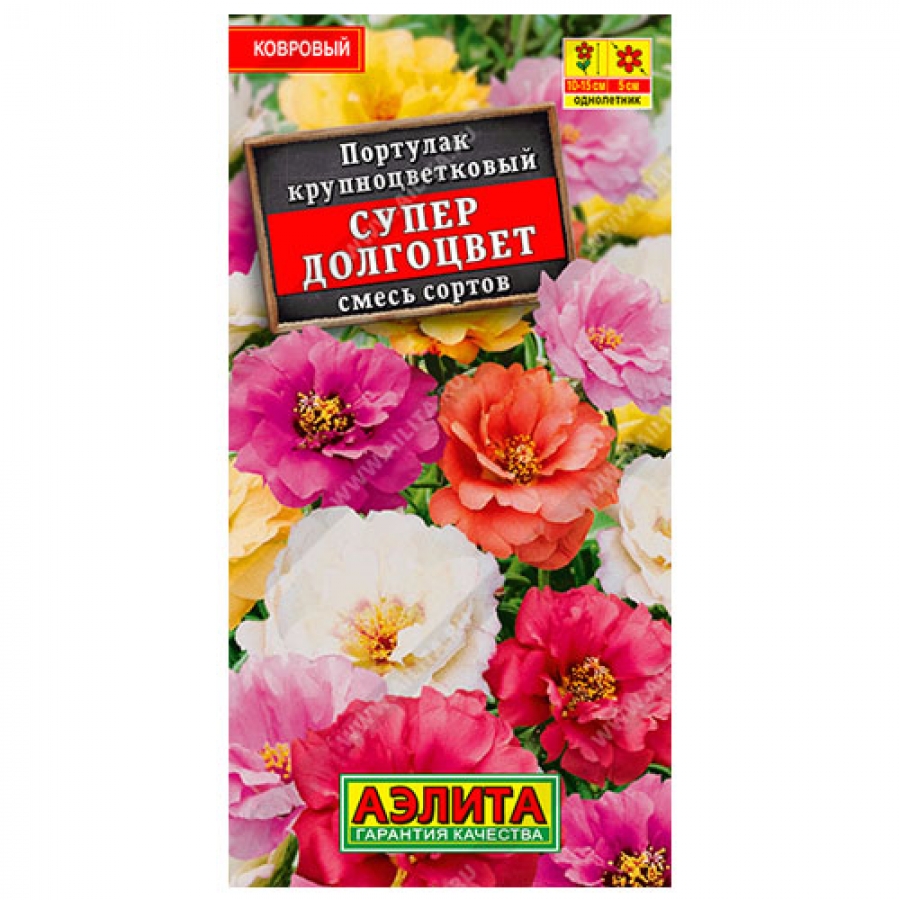 Яркая смесь почвопокровного летника для оформления цветников, контейнеров, альпинариев. Кустики высотой 10-15 см. Цветки махровые, Ø 4-5 см. Растения засухоустойчивые, хорошо развиваются на самом солнцепеке. В любой стадии развития растения не выносят избыточной влажности. Выращивают через рассаду или прямым посевом семян в открытый грунт.