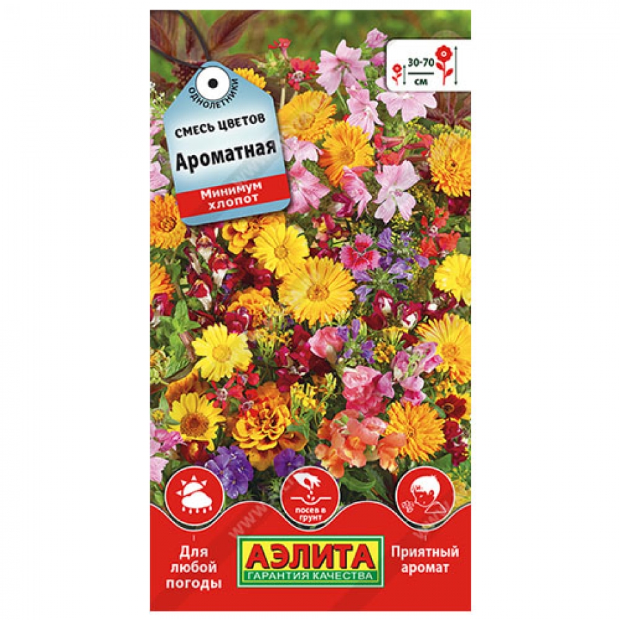 Ароматная смесь неприхотливых однолетников – настоящая находка для садовода. Минимум затрат и хлопот – семена всех любимых цветов в одной упаковке. Гармоничное сочетание оттенков + нежный запах соцветий + последовательное цветение = сад мечты!