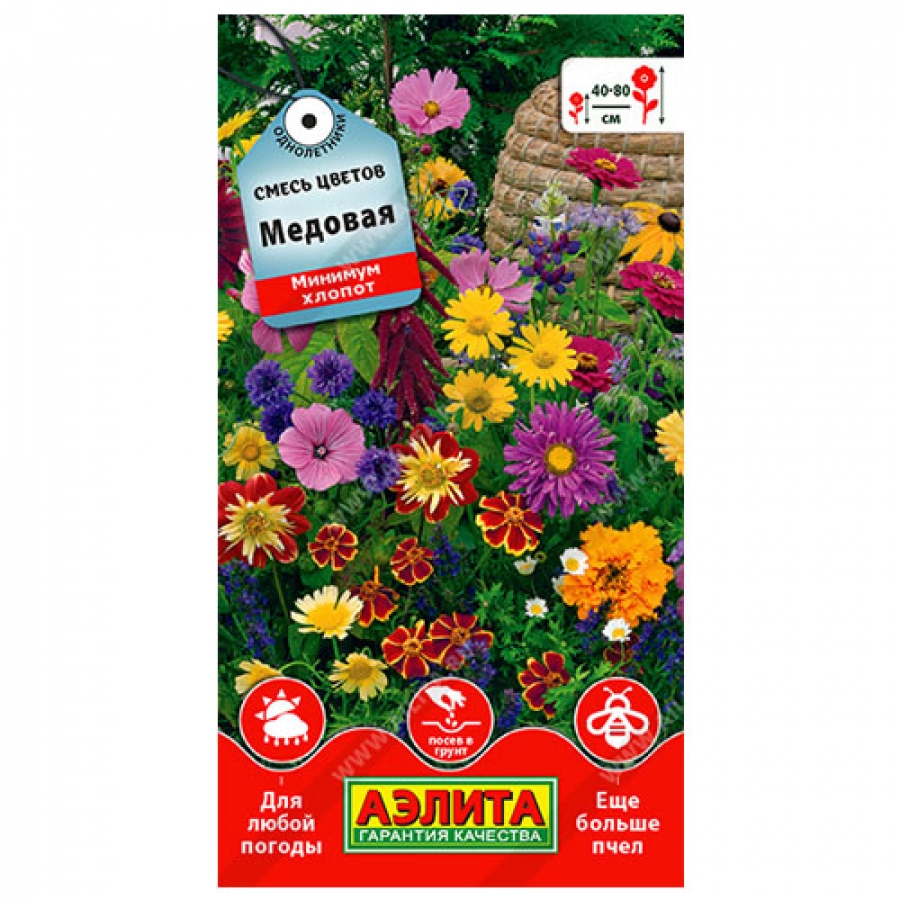 Состав смеси: василек, календула, иссоп лекарственный, лаванда декоративная, мальва, фацелия, флокс друммонда и другие.