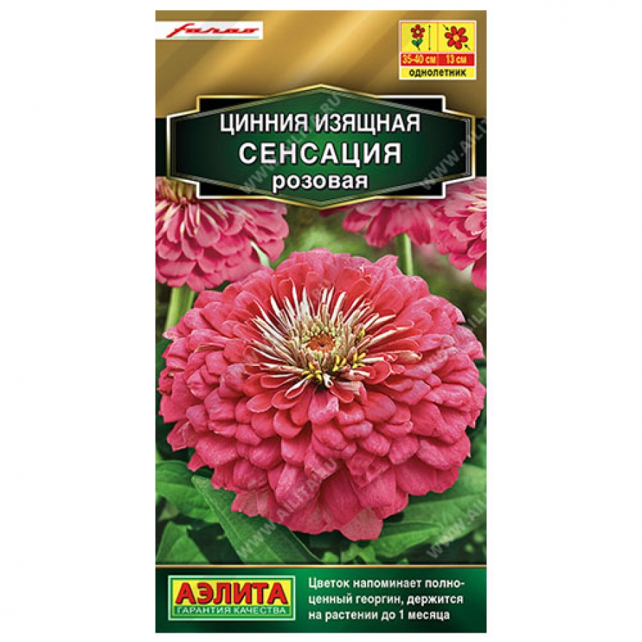 Циннии СЕНСАЦИЯ итальянской компании Farao – результат успешной селекции на очень крупный, густомахровый цветок (Ø 10-13 см). Едва ли вы найдете такое же крупное соцветие у других сортов и гибридов. Напоминающий полноценный георгин, эффектный цветок держится на растении более месяца. Крепкие, раскидистые кусты 35-40 см высотой красиво смотрятся в среднем ярусе миксбордера. Букеты из цинний СЕНСАЦИЯ долго стоят в воде.