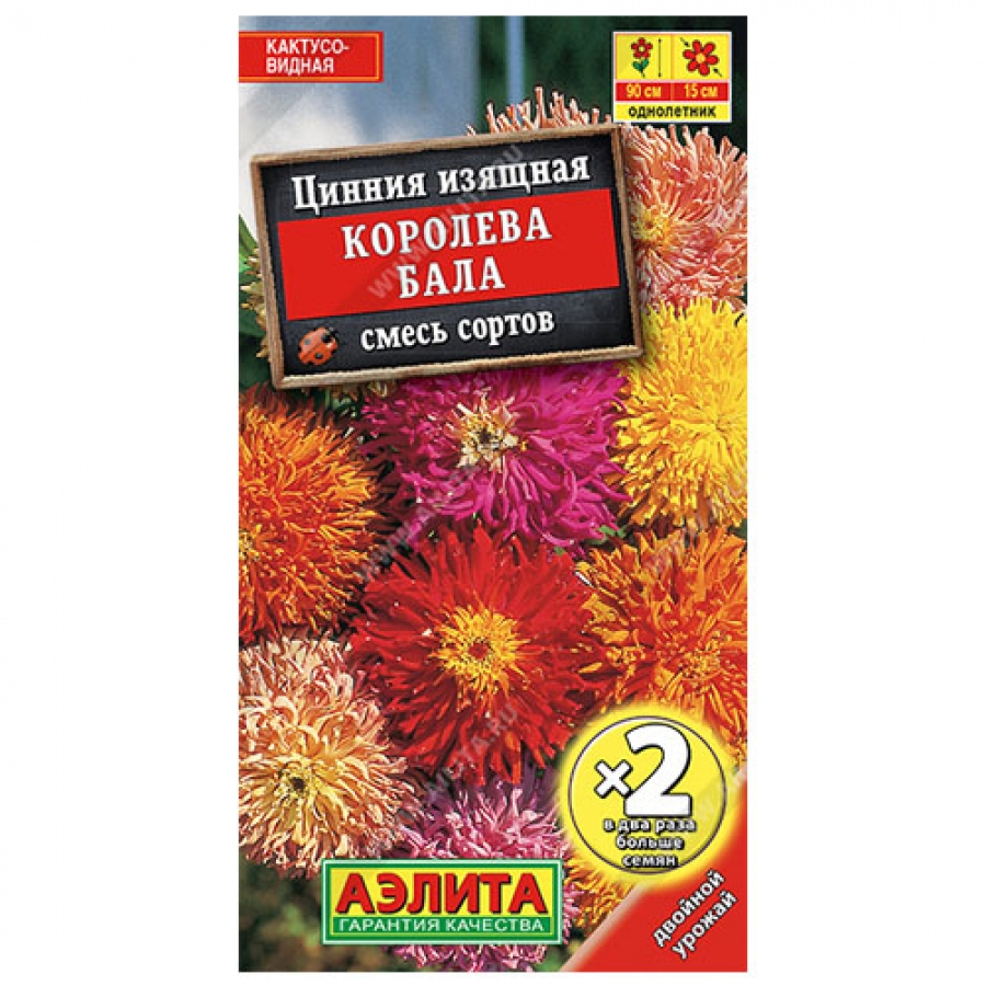 Эффектная смесь цинний с крупными, кактусовидными соцветиями. Кусты мощные, ветвистые, высотой 80-90 см, одновременно несут по 20-25 густомахровых и полумахровых соцветий-корзинок Ø 12-15 см. Цветение раннее и продолжительное, с июня до заморозков. Растения неприхотливые, свето- и теплолюбивые, засухоустойчивые. Растут быстро. Используются для групповых и одиночных посадок в миксбордерах, бордюрах и на клумбах. Отлично подходят для срезки, цветы долго стоят в воде.