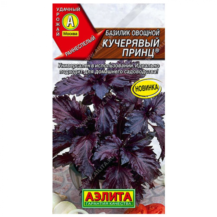Раннеспелый сорт с мягким ароматом аниса. Период от всходов до цветения – 45-50 дней. Подходит для выращивания в открытом грунте и в домашних условиях. Листья темно-фиолетового оттенка с перистыми краями. Растение формирует полураскидистый, сильно-облиственный куст, высотой до 50 см. Цветет розовыми цветами. Благодаря высоким вкусовым качествам и приятному аромату, прекрасно подходит для употребления в свежем виде, консервирования, а также в сушеном виде в качестве вкусовой добавки. В сочетании с необычной формой листьев и красивым цветением, сорт можно использовать, как декоративное растение. Урожайность зелени – 2,1-2,2 кг/м².