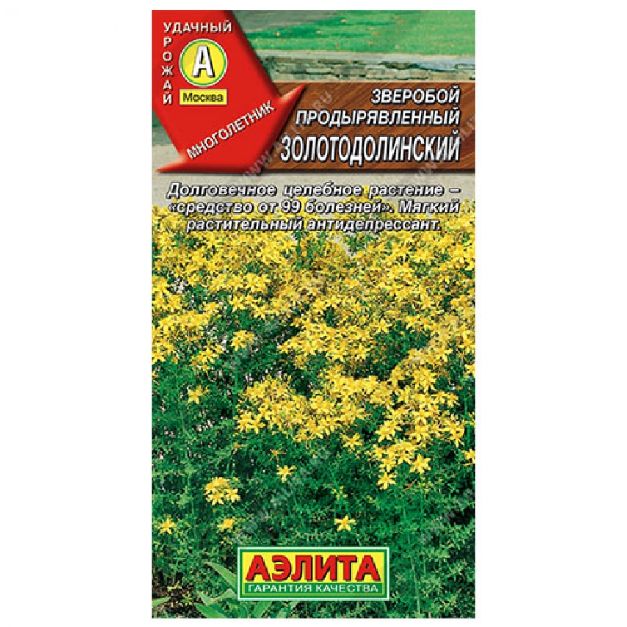 Неприхотливый многолетник высотой 80-90 см. Вегетационный период от всходов до цветения 83 дня. Цветки большие, лепестки широкие. Урожайность зеленой массы 1,6 кг/м². Устойчив к болезням и вредителям. Зверобой – уникальное лекарственное растение, известное как «средство от 99 болезней». Биологически активные вещества зверобоя оказывают антимикробное и противовирусное действие, стимулируют восстановление тканей (его успешно используют для заживления ран, облегчения болей при растяжениях, вывихах, ожогах), улучшают венозное кровообращение и кровоснабжение внутренних органов, оказывают капилляроукрепляющее действие. Он известен как мягкий растительный антидепрессант.