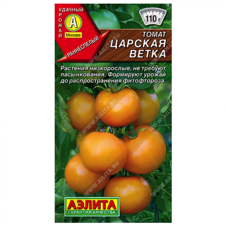 Раннеспелый сорт (от всходов до начала плодоношения 105-110 дней) для открытого грунта и временных пленочных укрытий. Урожайность высокая – 8-9 кг/м². Растения детерминантные, высотой 70-90 см, не пасынкуются. Успевают сформировать полноценный урожай до начала распространения фитофтороза в условиях средней полосы. Плоды округлой формы, слаборебристые, массой 90-110 г, с замечательным гармоничным вкусом и интенсивным ароматом. Пригодны для потребления в свежем виде и для цельноплодного консервирования. Сорт устойчив к вирусу табачной мозаики.