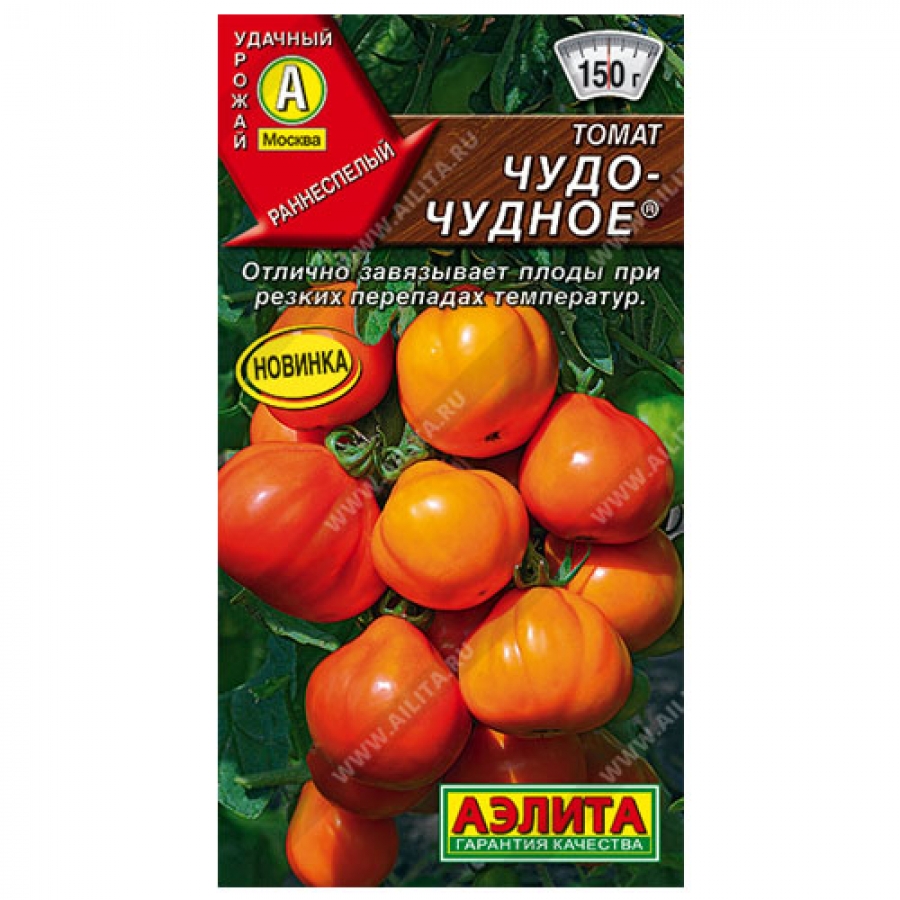 Сорт Чудо-чудное гарантировано обеспечит вас урожаем вкусных и сладких томатов. Рекомендуется для выращивания в открытом и защищенном грунте. Индетерминантный, в теплице высотой 1,8-2,0 м. Томат среднеспелый, от всходов до первого сбора 110-115 дней. Масса плодов* 100-150 г, (отдельные 200-300 г). Как и все оранжевые томаты, сорт насыщен бета-каротином и витаминами, но при этом не вызывает аллергии. Хорошо завязывает плоды при перепадах температур. Плоды отлично хранятся и переносят транспортировку. Урожайность в теплице 8-9 кг/м².