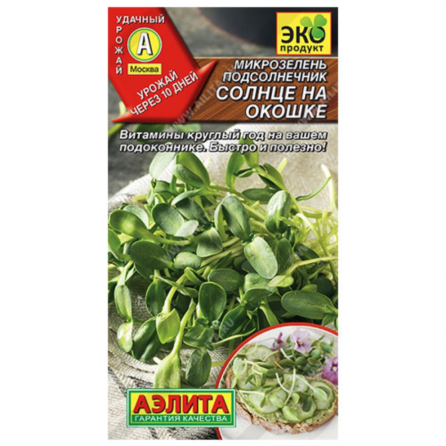 Яркая и аппетитная микрозелень подсолнечника – изысканный и ценный подарок природы. В молодых ростках содержится огромное количество полезных микроэлементов, витаминов и аминокислот. Регулярное употребление в пищу способствует общему оздоровлению организма и похудению. Микрозелень обладает ярко-выраженным салатным вкусом с едва уловимым масляным послевкусием. Свежесрезанные ростки используют в салатах, для приготовления бутербродов, добавляют в овощной фреш.