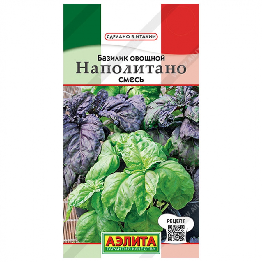 Новинка в серии Наполитано – яркая смесь красно- и зеленолистного базилика. Сорт, более известный как Napolitano "LETTUCE-LEAF", отличается высокой урожайностью и длительной отдачей продукции. Хорошо удается в горшечной культуре (объем контейнера не менее 2-3 л). От всходов до первой срезки молодой зелени проходит 30-35 дней. Высота крепких, густых растений около 35-40 см. Крупные ароматные листья используются в свежем и сушеном виде в кулинарии: для соусов, салатов и закусок, при мариновании овощей.