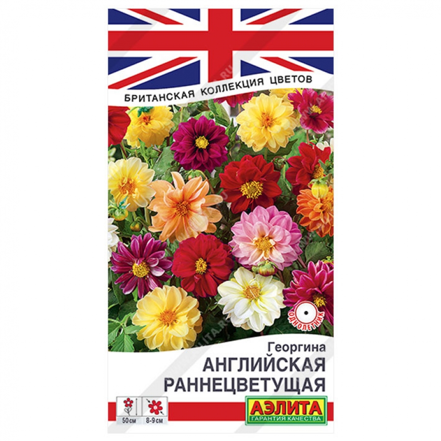 Экстраранняя низкорослая георгина – яркая основа дизайна садовых клумб и палисадников. Смесь включает все возможные оттенки летнего настроения. Растения высотой до 50 см, компактные, ветвистые, крепкие, стойко переносят непогоду. Соцветия полумахрового типа, насыщенных глубоких цветов, крупные, Ø 8-9 см. Смесь неприхотливая, эффектная, отлично растет в ограниченном объеме грунта, может использоваться для срезки в небольшие букеты.