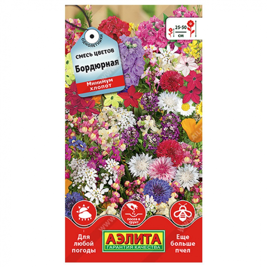Оригинальная, не требующая специального ухода смесь для создания бордюров в саду. Включает все самые яркие, однолетние, низкорослые сорта с длительным периодом цветения. Отлично подойдет для обрамления высокорослых цветников и декоративных водоемов, придания ярких контуров газону и садовым дорожкам. Позволяет создать эффектный, плотный, цветочный ковер, легко заменяя изнурительный и дорогой рассадный метод озеленения.
