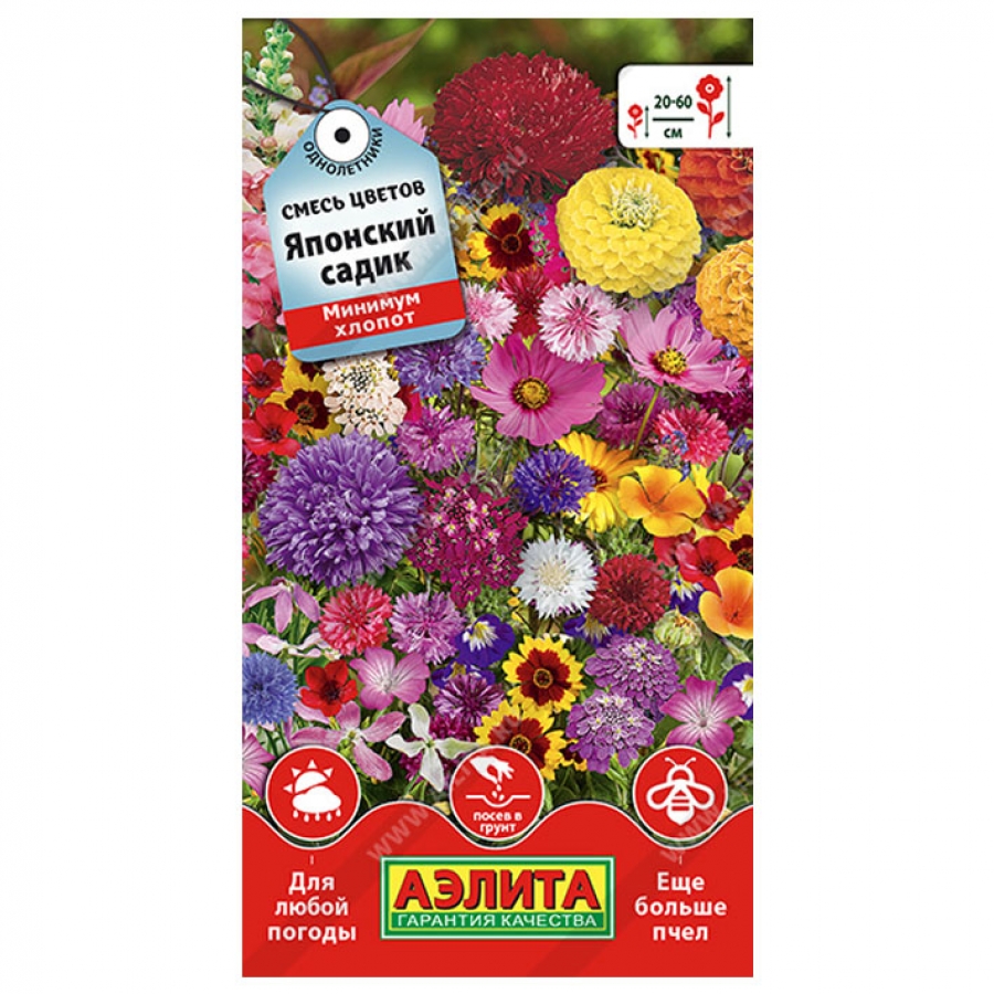 Состав смеси: агростемма, астра однолетняя, василек, вьюнок, календула, лен красноцветковый, цинния и другие.
